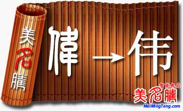 68、偉(6畫,音wei)—— 大,壯大。象征有志之人??善鹈纾捍髠?。春偉、新偉、勝偉、思偉。